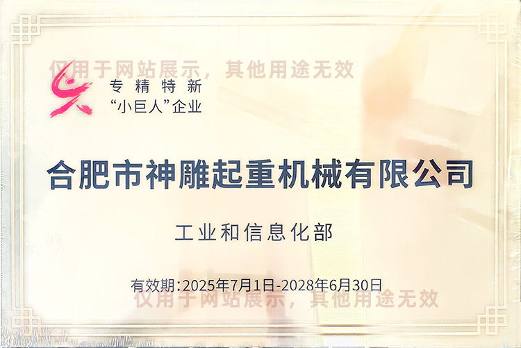 合肥神雕起重是高新技術(shù)企業(yè),是安徽省科創(chuàng)板掛牌企業(yè)(證券代碼:630331),同時(shí)榮獲安徽市場質(zhì)量、誠信五星級企業(yè)、合肥經(jīng)濟(jì)圈示范企業(yè)、合肥市創(chuàng)新型企業(yè)、安徽省市場質(zhì)量放心產(chǎn)品等榮譽(yù)稱號